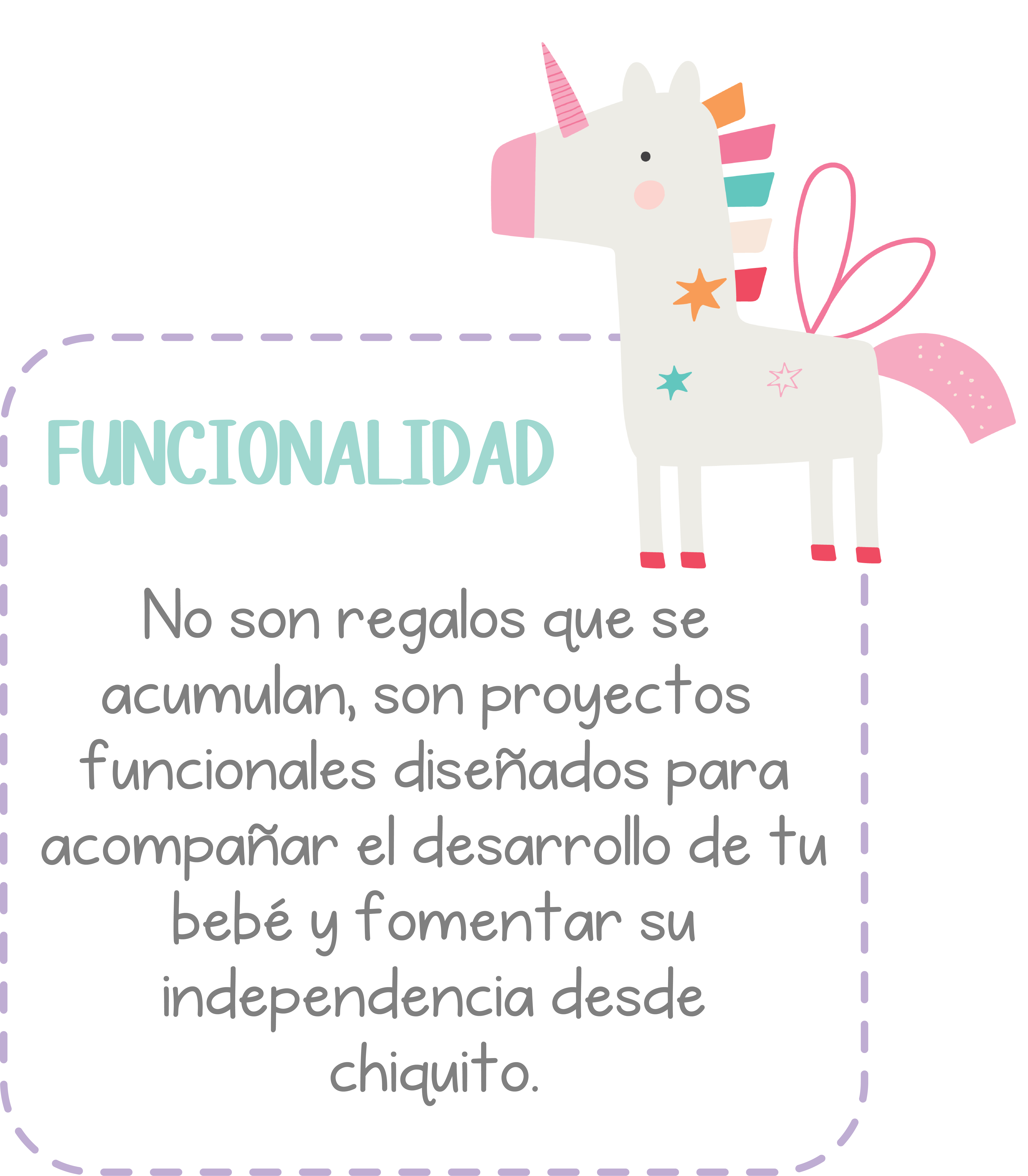 Cada proyecto está inspirado en la filosofía Montessori y tiene un propósito pedagógico especial que acompañará el desarrollo de tu bebé desde sus primeros meses.